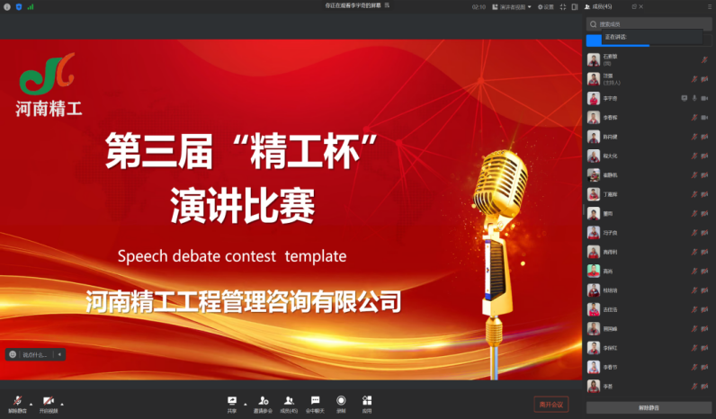 | 語言蘊(yùn)藏力量,講述照亮未來。為深入踐行行業(yè)核心價(jià)值理念,凝聚團(tuán)隊(duì)共識(shí),強(qiáng)化全員對(duì)工程咨詢服務(wù)本質(zhì)的理解與堅(jiān)守,持續(xù)提升服務(wù)質(zhì)量與專業(yè)素養(yǎng),河南精工工程管理咨詢有限公司于2025年11月22日成功舉辦第三屆“精工杯”演講比賽,并在公司會(huì)議室圓滿落幕。