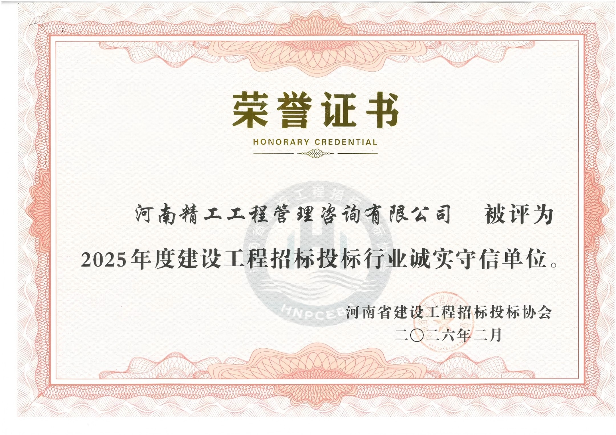 榮譽(yù)是鼓勵(lì),更是前行的動(dòng)力。未來(lái),河南精工工程管理咨詢(xún)有限公司將繼續(xù)秉持“精準(zhǔn)專(zhuān)業(yè)熱忱守約”的企業(yè)精神,不斷提升服務(wù)水平和管理能力,為推動(dòng)建設(shè)工程招標(biāo)投標(biāo)行業(yè)高質(zhì)量發(fā)展貢獻(xiàn)力量!